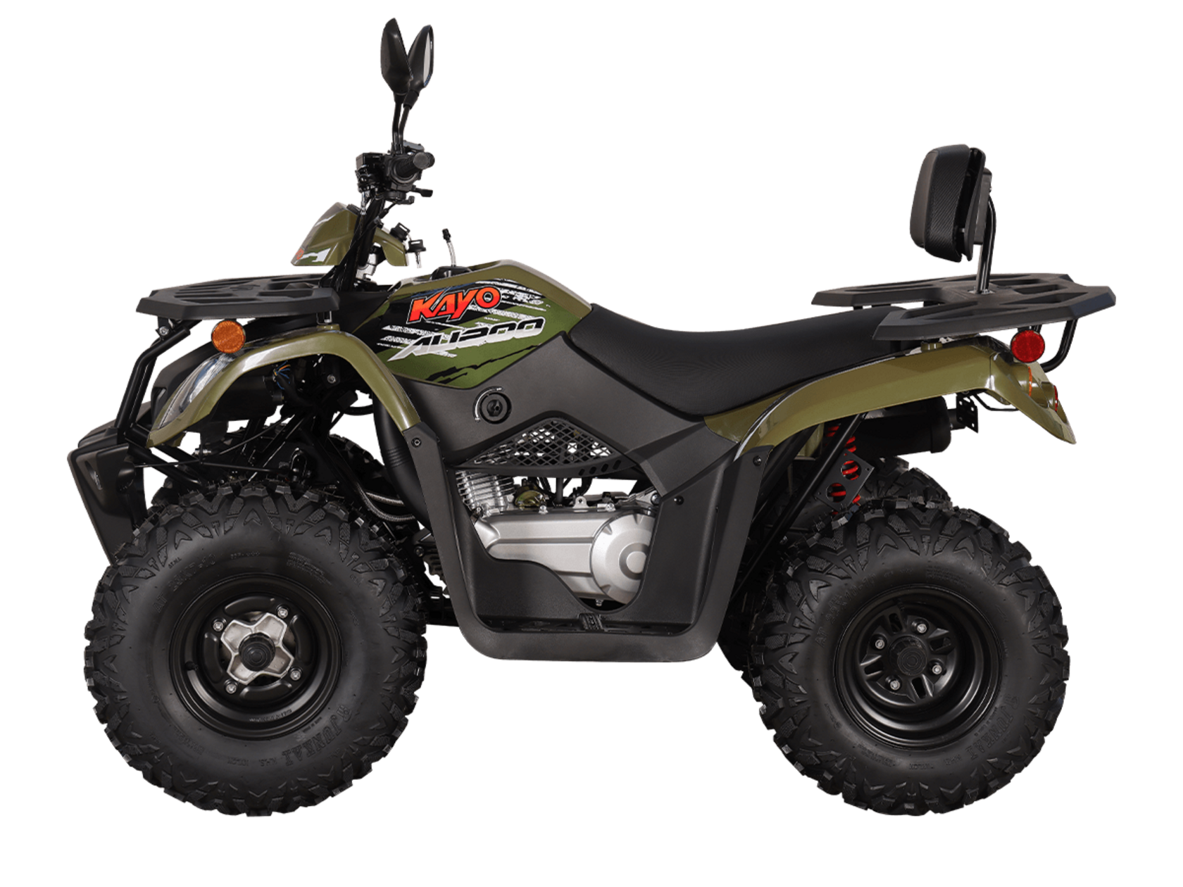KAYO AU200 — это современный утилитарный квадроцикл, созданный для любителей активного отдыха, внедорожных путешествий и хозяйственного применения. Обновлённая версия 2025 года с зелёным хаки пластиковым обвесом сочетает в себе надёжность, удобство и высокую проходимость.