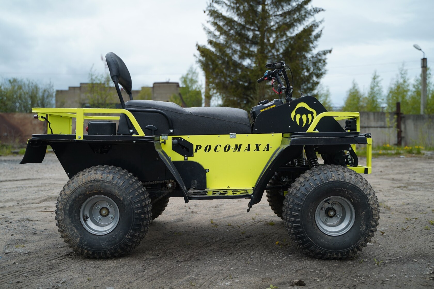 Клиренс 275 мм и колёса низкого давления позволяют преодолевать любые преграды. Простое управление и удобство в любых условиях эксплуатации. Надёжная тормозная система обеспечивает безопасность при езде. Изготовление на одном предприятии с единым контролем качества.Квадроцикл Росомаха 500