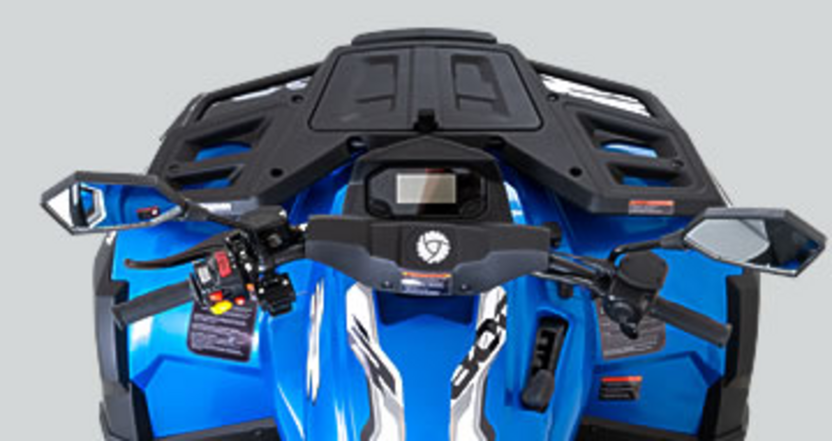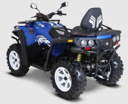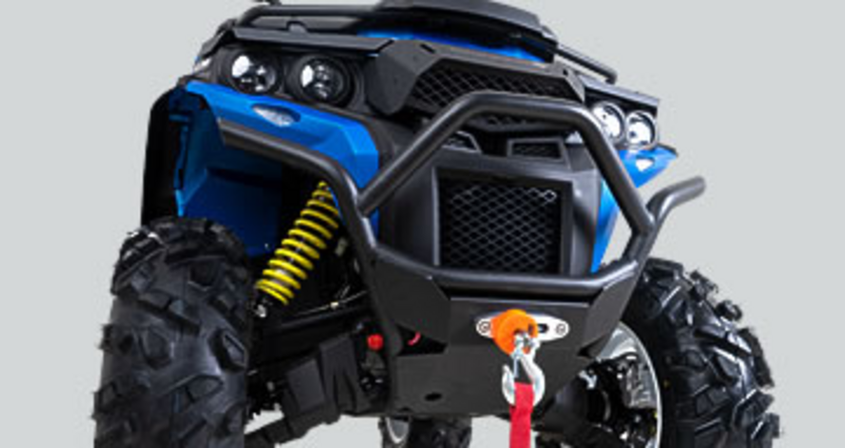 Базовая комплектация включает всё необходимое: мощная лебёдка на 3000 lbs, светодиодная оптика, защита рук, зеркала заднего вида. Квадроцикл полностью готов к эксплуатации в суровых условиях. Его надёжность подтверждена трёхлетней гарантией, а российская сборка обеспечивает доступность комплектующих.