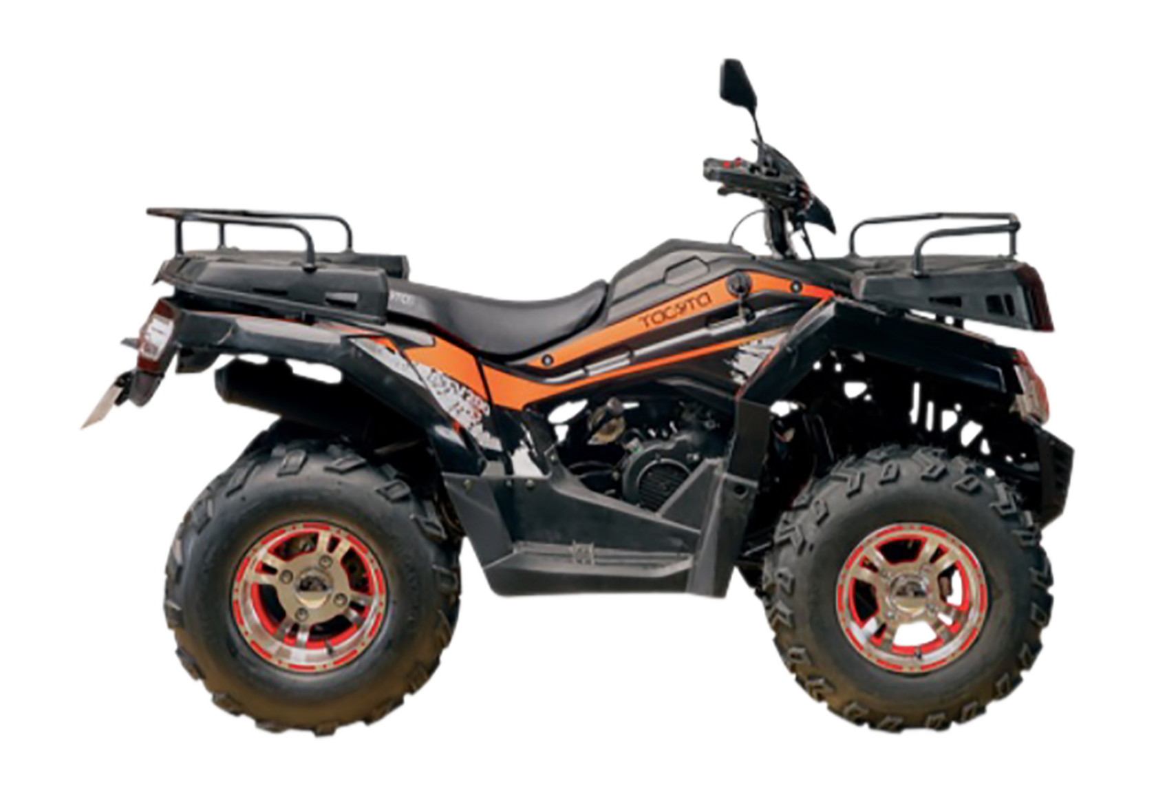 Благодаря 4-тактному двигателю объёмом 200 куб. см и мощности 17 лошадиных сил, этот квадроцикл легко преодолевает бездорожье и крутые подъёмы. Воздушно-масляная система охлаждения обеспечивает стабильную работу мотора даже при длительных нагрузках, а вариаторная трансмиссия делает управление плавным и лёгким.
