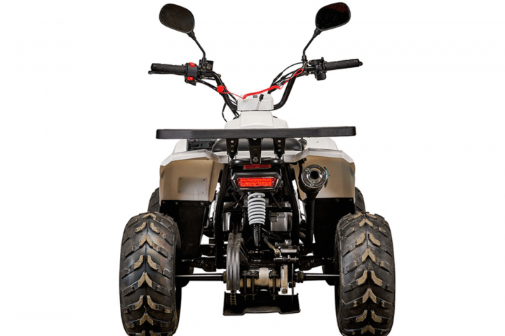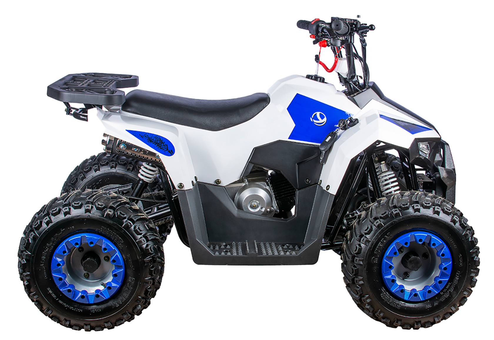 Квадроцикл оборудован страховочной чекой для экстренной остановки двигателя, а также ограничителем скорости, позволяющим адаптировать мощность под навыки ребёнка. Благодаря вариаторной трансмиссии, управление максимально упрощено — достаточно лишь поворачивать ручку газа.