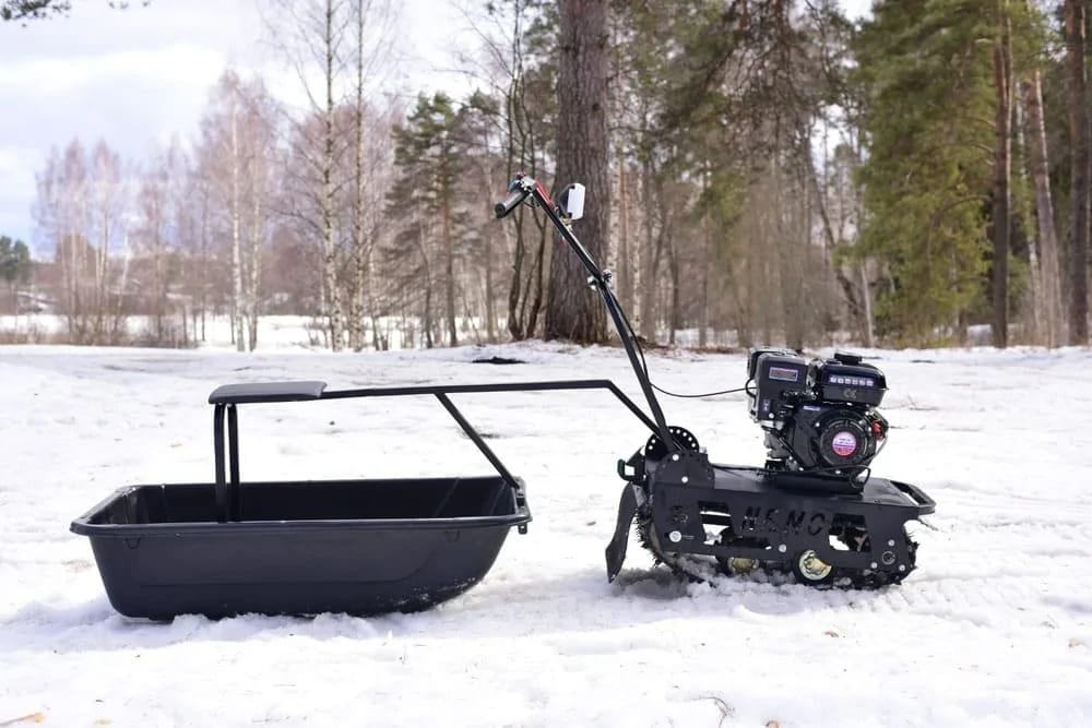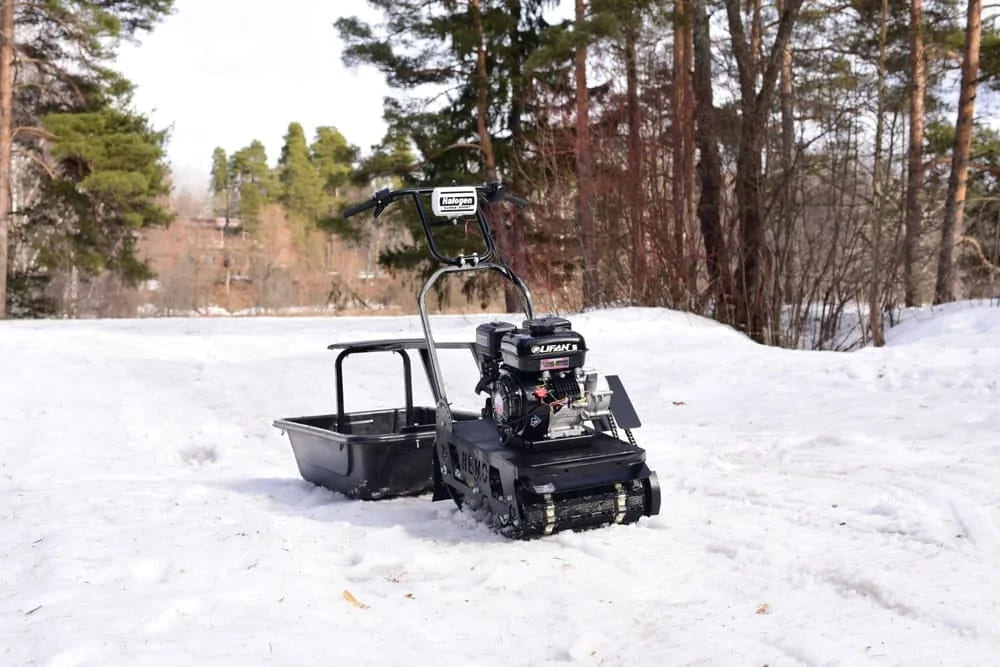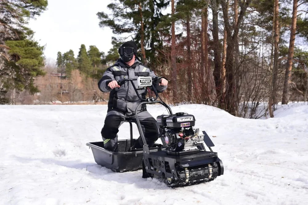 Мотобуксировщик БУРЛАК-М Немо 6.5 л.с. — это универсальный помощник для передвижения по бездорожью, предназначенный как для активного отдыха, так и для хозяйственных нужд. Благодаря компактности и разборной конструкции он с лёгкостью помещается в багажник легкового автомобиля. Эта модель оснащена бензиновым четырёхтактным двигателем Lifan мощностью 6.5 л.с., который отличается надёжностью, экономичностью и лёгким запуском с помощью ручного стартера. Воздушная система охлаждения и карбюраторная подача топлива обеспечивают стабильную работу двигателя в любых погодных условиях. В комплект входят сани с рулевым управлением и сиденьем, что значительно повышает комфорт при эксплуатации. Также предусмотрена возможность установки лыжного модуля, что делает технику всесезонной и подходящей для зимнего времени года. Грузоподъёмность до 250 кг и надёжная катковая подвеска позволяют уверенно передвигаться по пересечённой местности, а ширина гусеницы 380 мм и высокий грунтозацеп обеспечивают отличное сцепление с поверхностью. Полностью разборная конструкция легко помещается в багажник легкового авто. Подходит для рыбалки, охоты, отдыха и перевозки грузов круглый год. Сани с рулевым управлением и сиденьем входят в комплект. Есть подогрев ручек. Широкая гусеница 380 мм и мощный двигатель обеспечивают уверенное движение по снегу и бездорожью. Все характеристики приведены для ознакомления и могут отличаться в зависимости от партии. Производитель оставляет за собой право изменять параметры без предварительного уведомления.БУРЛАК-М Немо 6.5 л.с.