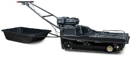 Вариаторная трансмиссия позволяет эффективно регулировать мощность и скорость движения. Гусеница шириной 380 мм с катковой подвеской обеспечивает отличное сцепление с поверхностью, включая лёд и твёрдый грунт.