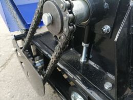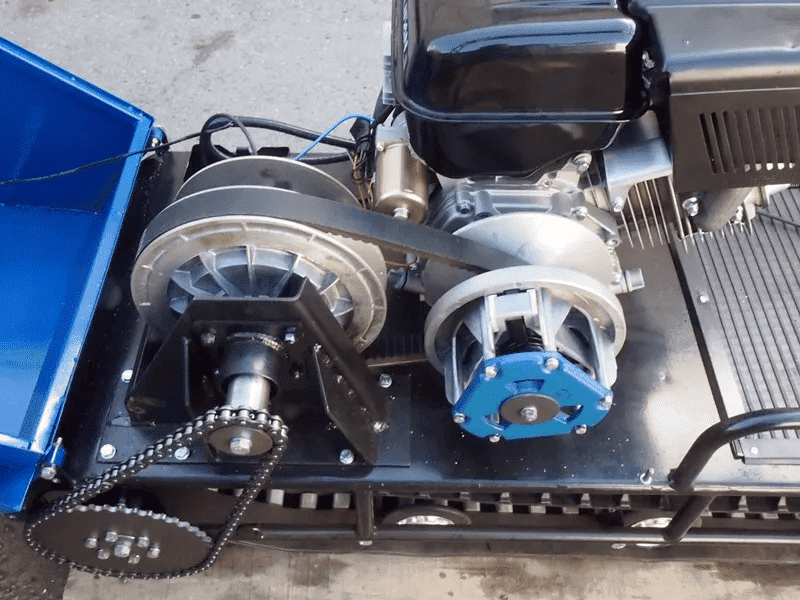Гусеница шириной 500 мм и катковая подвеска гарантируют устойчивое движение по любому типу покрытия. Дополнительно возможна установка адаптивной подвески, пневмоколёс или склизовой базы. Благодаря реверсивной коробке передач предусмотрен задний ход.