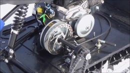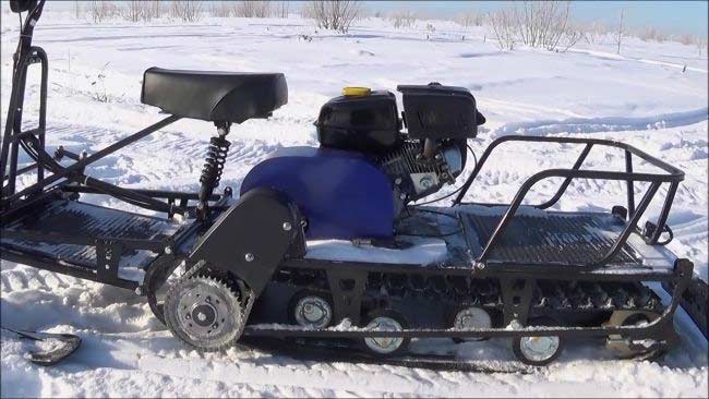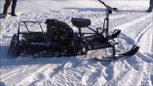 Вариатор обеспечивает плавное изменение передаточного числа и поддерживает оптимальную тягу, повышая экономичность и стабильность движения. Мощный 4-тактный бензиновый двигатель на 8 л.с. и объёмом 230 см³ развивает скорость до 25 км/ч, позволяя перевозить до 150 кг груза в санях.