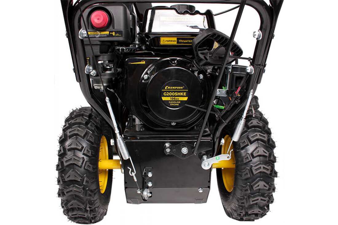 Колеса. Снегоуборщик оснащен колесами, которые имеют отличное сцепление с поверхностью и могут проходить не только по наклону, но и по скользкой дороге.