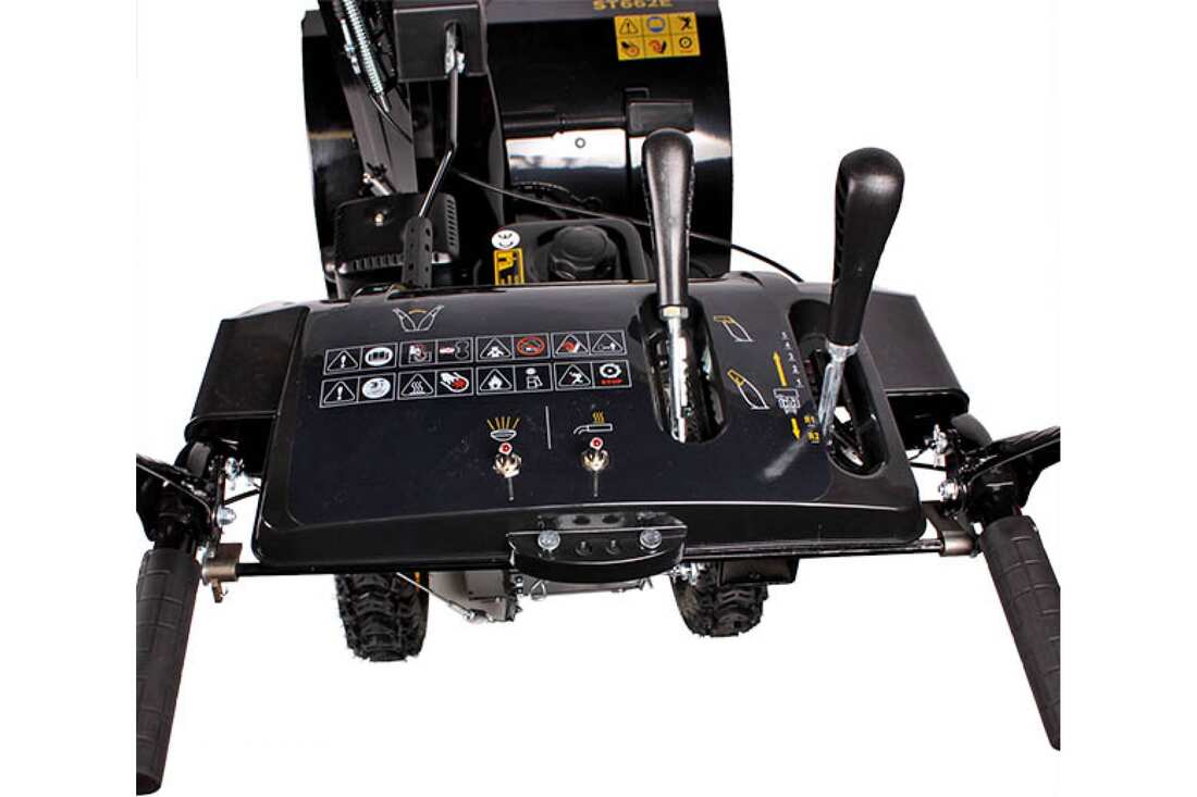 Скорость. Снегоочиститель обладает 5-ю передачами вперед и 2-мя назад таким образом, что вы сможете выбрать оптимальную скорость, от которой будет зависеть также и сила уборки (в зависимости от сложности задач).