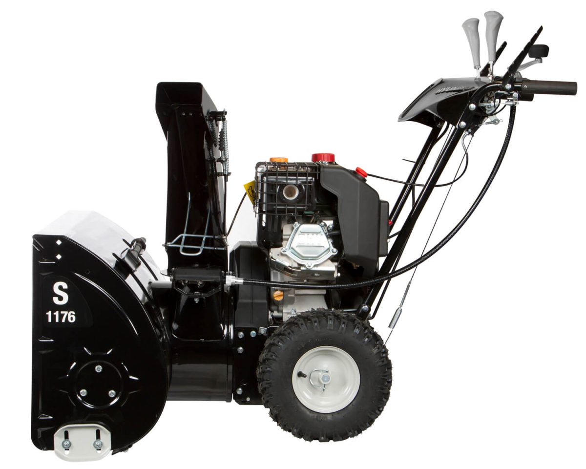 Эта модель снегоуборочной техники демонстрирует эффективность при работе с плотным и свежим снегом. Она также оснащена специальными рычагами на панели управления, которые позволяют регулировать высоту и направление выброса снега. Основные преимущества модели: