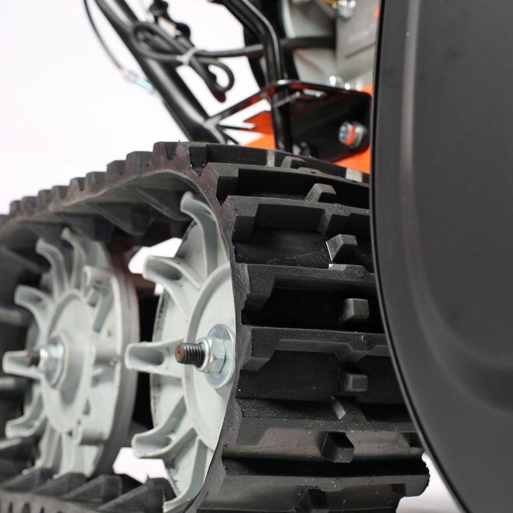 • ● двухступенчатая система выброса и зазубренный шнек легко справляются с уборкой любого типа снега;